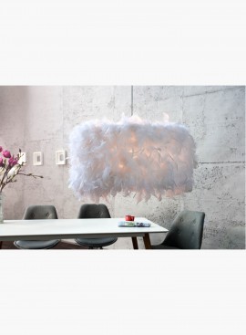 Szykowna propozycja lampy wiszącej z białymi piórami. Lampa w tej formie jest niezwykle interesująca i powoduje, że wyróżnia się spośród innych modeli.