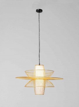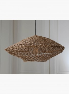 Abażur jest ręcznie pleciony (technika makramy), każda lampa wykonywana jest przez mistrzów tej tradycyjnej techniki przy użyciu sznurka z makulatury, produkowanego w ekologicznych warsztatach.
