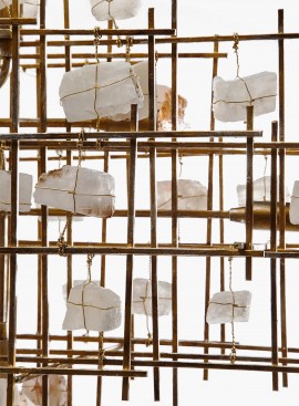 Imponująca i spektakularna, duża lampa wisząca, połączenie światła, metalu i naturalnych kamieni ozdobnych. Kratowa konstrukcja sprawia, że lampa nie wygląda ciężko ale zapewnia fascynujący widok jej wnętrza i wygląda jak wiszące dzieło sztuki. Designerska i ekskluzywna propozycja. Ta nietuzinkowa lampa robi ogromne wrażenie i przyciąga wzrok, sprawdzi się szerokiej palecie współczesnych wariantów aranżacyjnych.