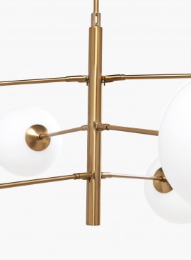 Białe kule świetlne to nie tylko klasyka ale także bardzo modny trend home designu w ostatnim czasie, ten projekt wyraźnie inspirowany jest ponadczasową stylistyką ale przeplata się z nowoczesną estetyką. Aż 6 źródeł światła pozwoli na zastosowanie tej lampy zarówno jako oświetlenia centralnego czy aranżacji jadalni nad stołami prostokątnymi czy okrągłymi. Doda wyrafinowanego wyrazu także w gabinecie czy sypialni.