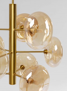 9 szklanych kloszy. Dzięki specjalnej powłoce szkło posiada odbijający światło połysk w odcieniu złota.