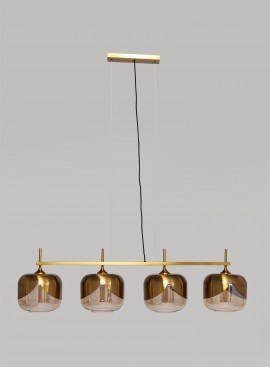 Lampa wisząca z czterema kloszami, mosiężne wykończenie i przyciemniane szkło wniesie do Twojego domu elegancję. Lampa z wyraźnymi liniami, nowoczesnymi detalami i delikatnym klimatem retro, całość wprowadzi ciepło do pomieszczenia. Światło promieniuje w dół - delikatnie przyciemniane przez klosze z kolorowego - przydymionego szkła. Dzięki sposobowi zawieszenia sprawia wrażenie unoszącej się w pomieszczeniu.