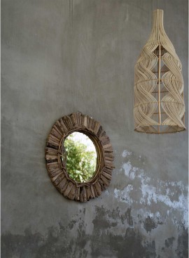 Abażur jest ręcznie pleciony (technika makramy), każda lampa wykonywana jest przez mistrzów tej tradycyjnej techniki przy użyciu sznurka z makulatury, produkowanego w ekologicznych warsztatach.