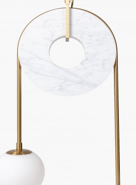 Lampa wisząca Balance to stylowe wzornictwo. Bardzo elegancka i subtelna propozycja z dekoracyjnym, okrągłym elementem marmurowym i dwoma białymi, satynowanymi szklanymi kulami oraz elementami ze stali szczotkowanej w kolorze złotym. Ręcznie wykonywana.