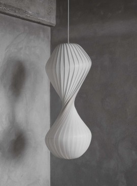 Teksturowany biały materiał zapewnia komfortowe rozproszone światło. Wyjątkowa i intrygująca lampa o designerskim, nieco zwariowanym i asymetrycznym kształcie, która nigdy się nie nudzi.