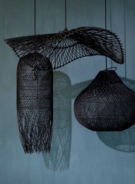 Lampa wisząca Fish Trap rattanowa Czarna M516,00 złLampa wisząca o splocie przypominającym sieć rybacką, lampa w średnim rozmiarze (62 cm), wąska, podłużna, o średniej gęstości splocie, prosty minimalistyczny design bez dodatkowych elementów dekoracyjnych. Lekka, trwała i co najważniejsze przyjazna dla środowiska.