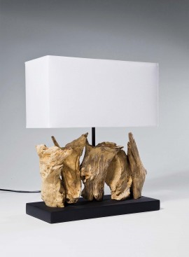 Ta propozycja to wysmakowane połączenie luksusu i natury, prosta forma. Unikatowe, naturalnie ukształtowane kawałki drewna, umiejętnie ułożone poziomo na solidnej podstawie, tworzą oryginalną lampę stołową, a prostokątny bawełniany klosz, zapewnia przyjemne, nieoślepiające światło. Lampa Nature Horizontal to propozycja w skandynawskim stylu.