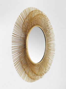 Wprowadzanie słońca do domu to zawsze dobry pomysł. Z tym lustrem działa to na dwa sposoby: z jednej strony dlatego, że samo w sobie przypomina słońcem ze złotym, lśniącym splotem promieni. Z drugiej strony, ponieważ jego lustrzana powierzchnia przechwytuje i odbija promienie słoneczne z zewnątrz, wnosząc do pomieszczenia więcej przyjemnego światła i optycznie je powiększając. Dekoracyjne lustro ścienne z ozdobną, trójwymiarową girlandą promieni. Lustro i ozdoba ścienna w jednym. Prawdziwa perełka nad sofą, konsolą lub komodą. Pomysłowe podkreślenie nadające nawet klasycznym lub chłodnym wnętrzom przyjemnej lekkości. Idealny prezent dla miłośników słońca.