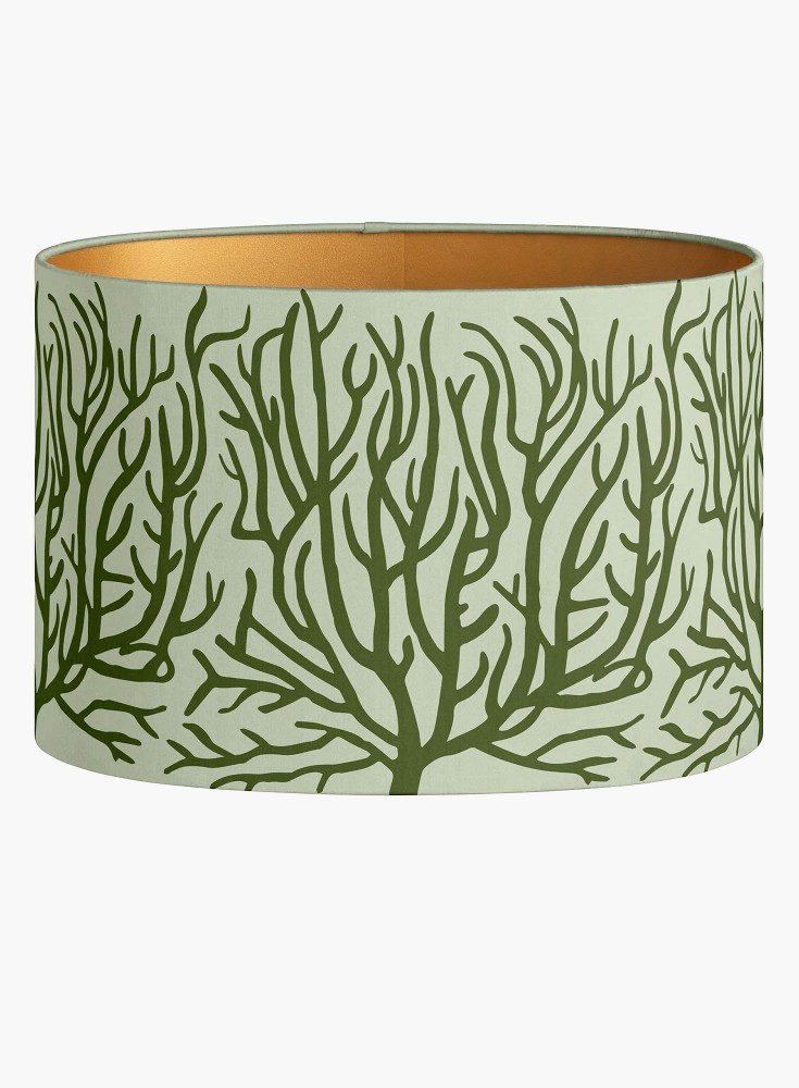 Seledynowy, ozdobiony designerskim wzorem - koralowcem - w odcieniu zielonym.