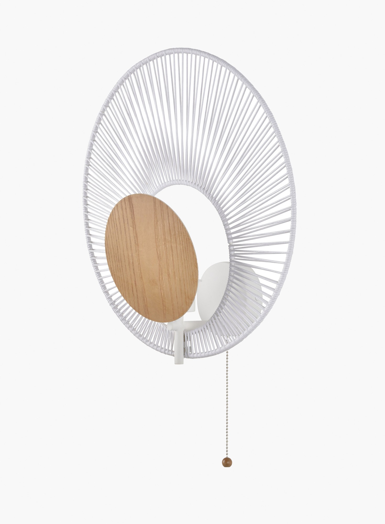 Dwa metalowe pierścienie tkane bawełnianymi nićmi są podstawą niezwykłego kinkietu Oyster. Żarówka, jest ukryta pod okrągłą pokrywą niczym perła w ostrydze. To rozwiązanie gwarantuje, że światło z żarówki nie powoduje olśnień.