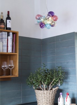 Kolorowe klosze stanowią ciekawą alternatywę dla klasycznych lamp w stonowanej kolorystyce. Ta lampa będzie zarówno uzupełnieniem do wnętrz w wielobarwnej kolorystyce jak i wyróżniającym się designerskim akcentem we wnętrzach o całkowicie stonowanej kolorystyce czy designie. Lampa posiada elementy/dodatki w kolorze chromu.
