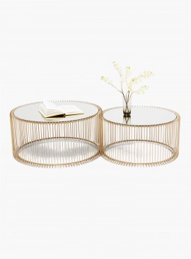 Kolejny z bestsellerowej kolekcji, tym razem stolik kawowy Wire (2/Set) w kolorze mosiądzu, to tak naprawdę zestaw aż dwóch stolików, stylowe połączenie i jedno z najmodniejszych rozwiązań w urządzaniu wnętrz, to jedna z propozycji ekskluzywnej niemieckiej marki Kare Design. Oryginalny stolik kawowy w stylu nowoczesnym, który będzie także doskonałym wyborem dla miłośników klasyki i minimalizmu. Precyzyjnie zarysowana i wykonana okrągła rama, ze smukłymi metalowymi prętami, podtrzymuje blat ze szkła. Sprytnie zaprojektowana solidna kompozycja, wygląda przy tym jednak lekko i filigranowo. Produkt wykonany został z dobrej jakości materiałów, jest stabilny i wytrzymały.