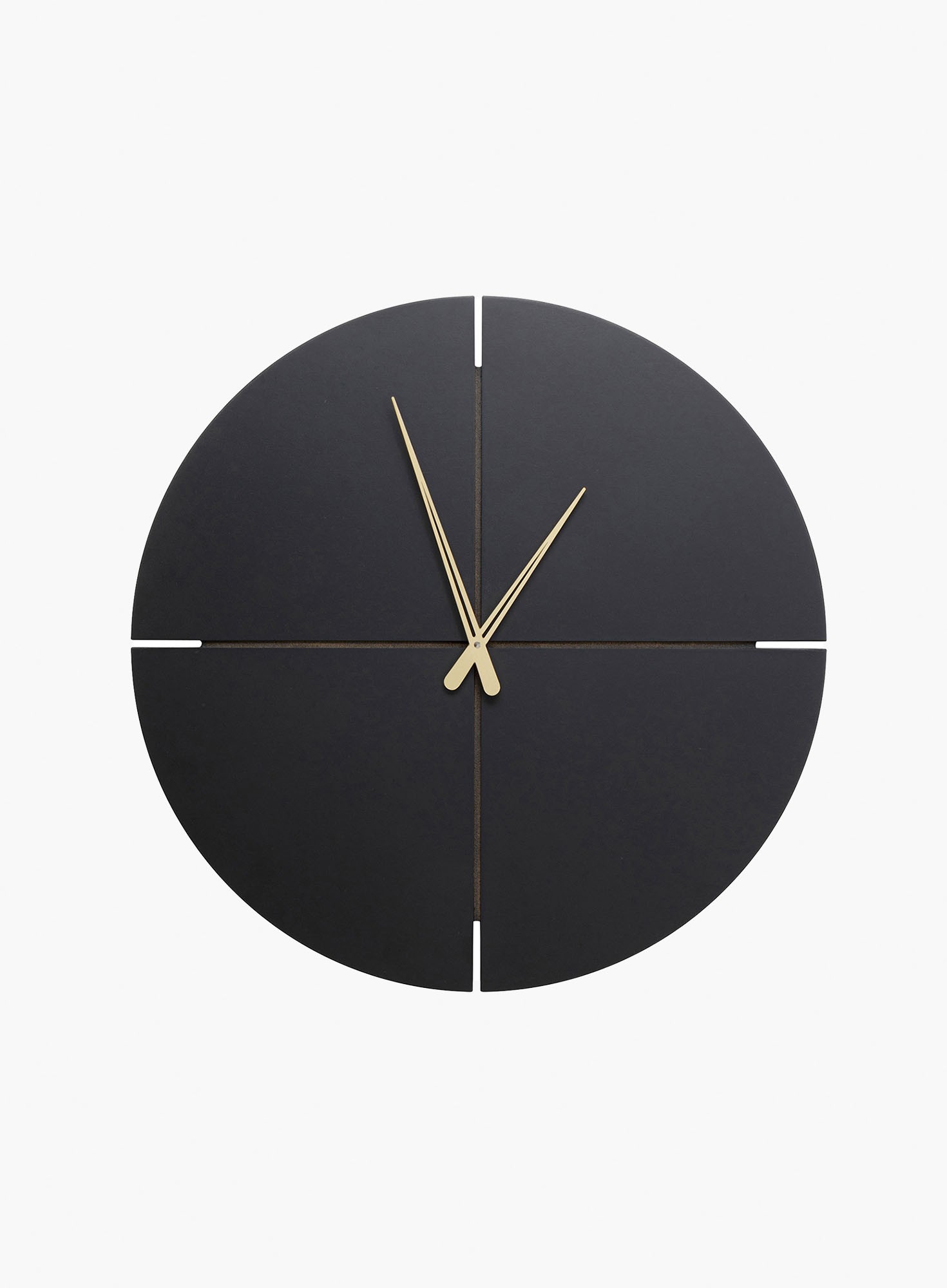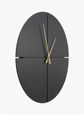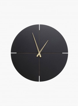 Charakterystycznym elementem zegara ściennego „Andrea” jest prosta okrągła tarcza pozbawiona cyfr. Czas wskazują dwie minimalistyczne i eleganckie wskazówki z lakierowanego aluminium w kolorze złotym. Na czarnym kontrastowym tle są bardzo dobrze widoczne w różnych warunkach oświetlenia.